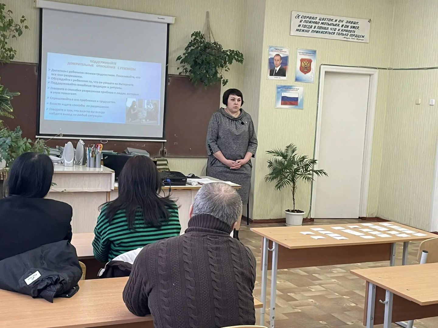 В рамках реализации основных направлений родительского Всеобуча 17 марта 2026 года в МБОУ СШ 15 педагог-психолог МБУ Центра "Сопровождение» Кузякова Т.Н. провела встречу с родителями.Тема встречи "Трудности подросткового возраста". Психолог проинформировал родителей об особенностях подросткового возраста, были даны рекомендации родителям по предупреждению конфликтов с детьми, построении конструктивного диалога с подростками. |